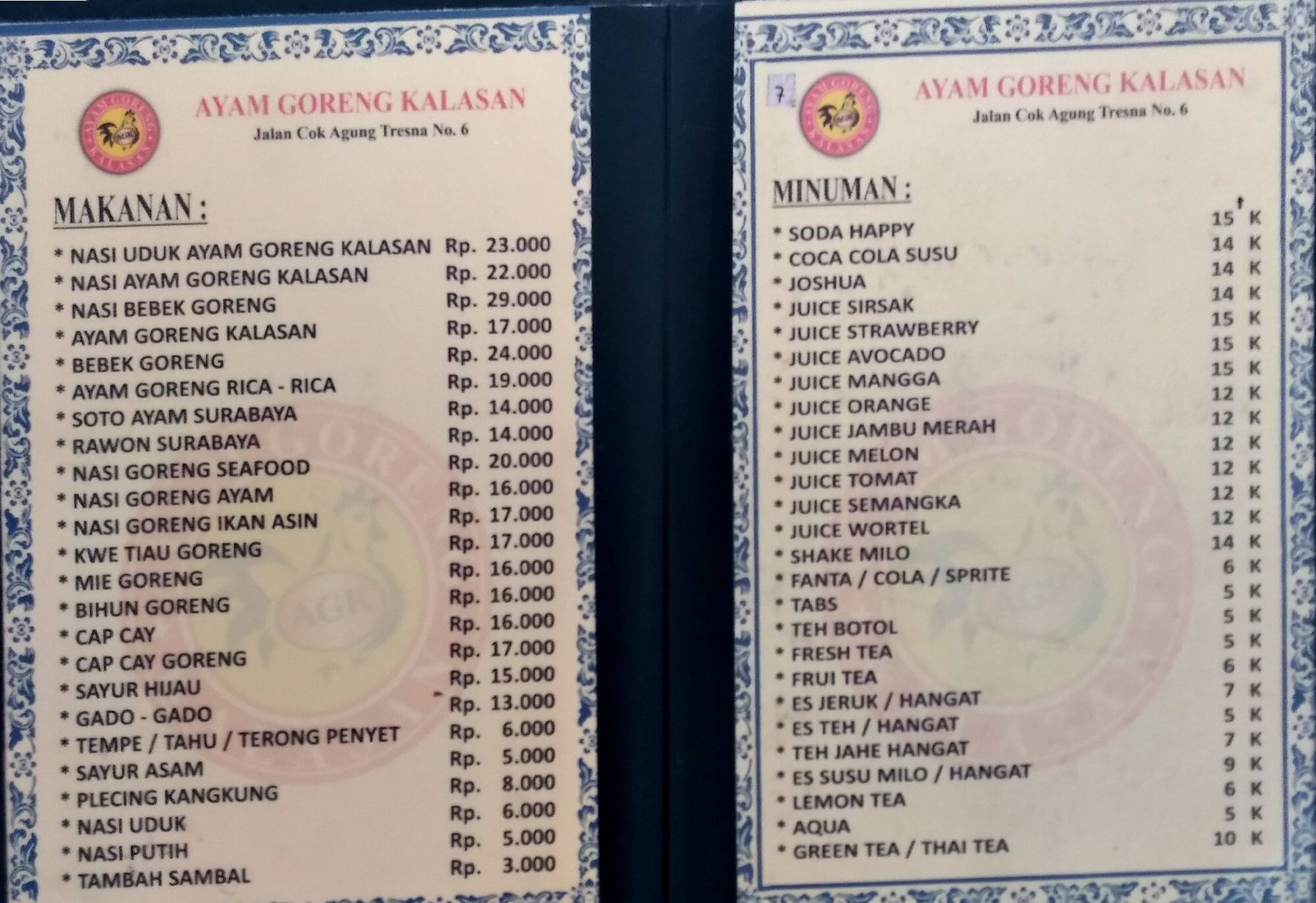 AYAM GORENG KALASANAYAM KALASANMANIS GURIH EMPUKRp38000. Harga ayam utuh adalah sebagai berikut. Sambal kecap atau sambal cabai disertakan untuk menambah kelezatan.
